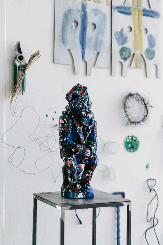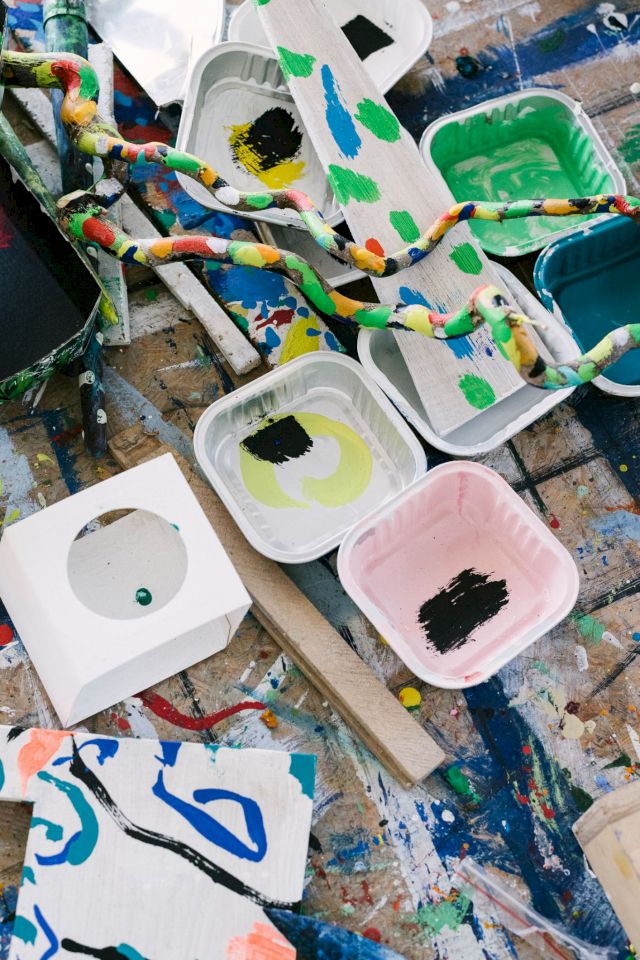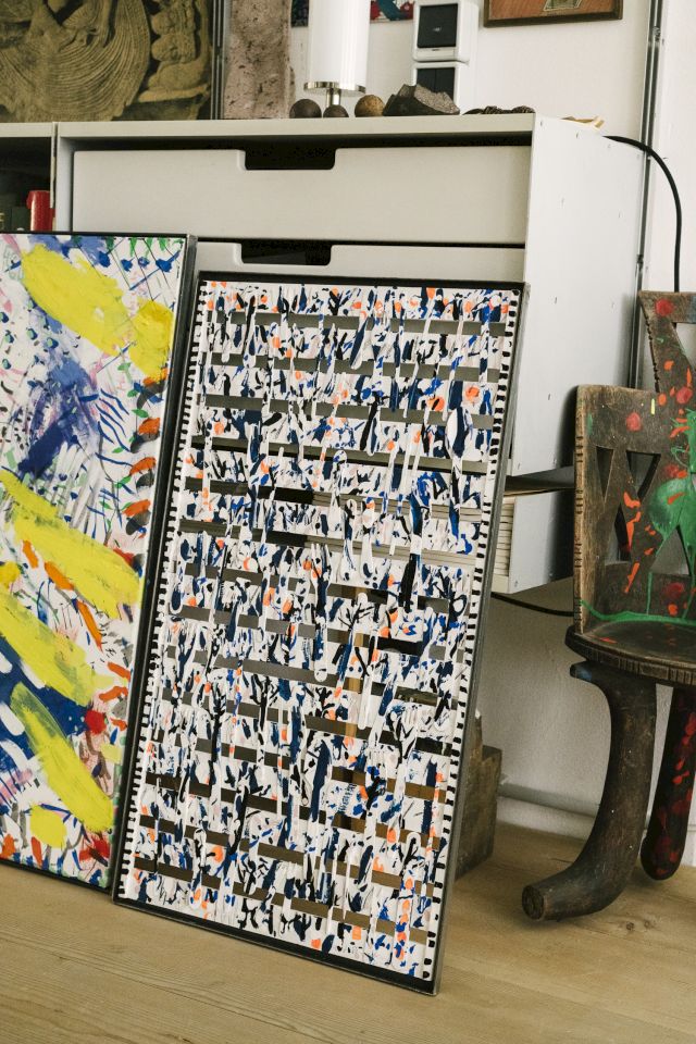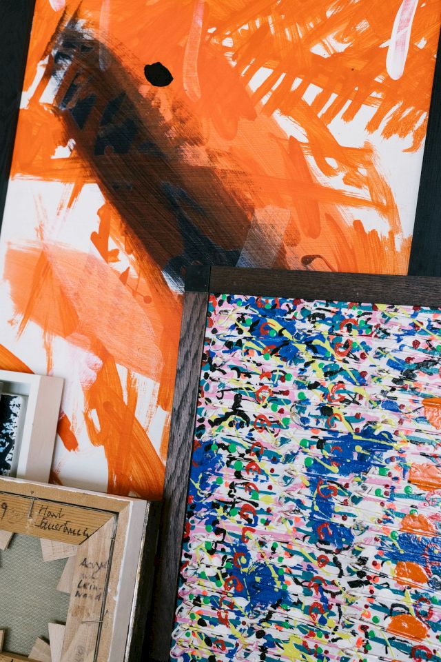 Öl, Stifte, Acryl auf Pappe, Fundstück
