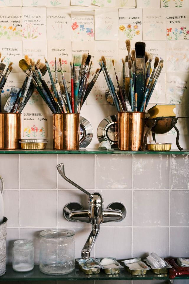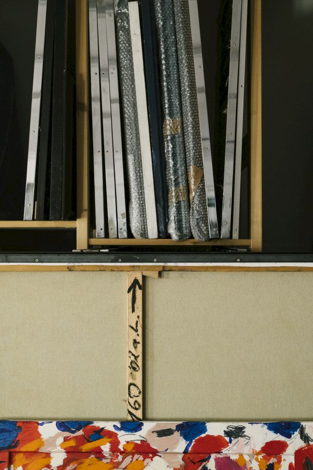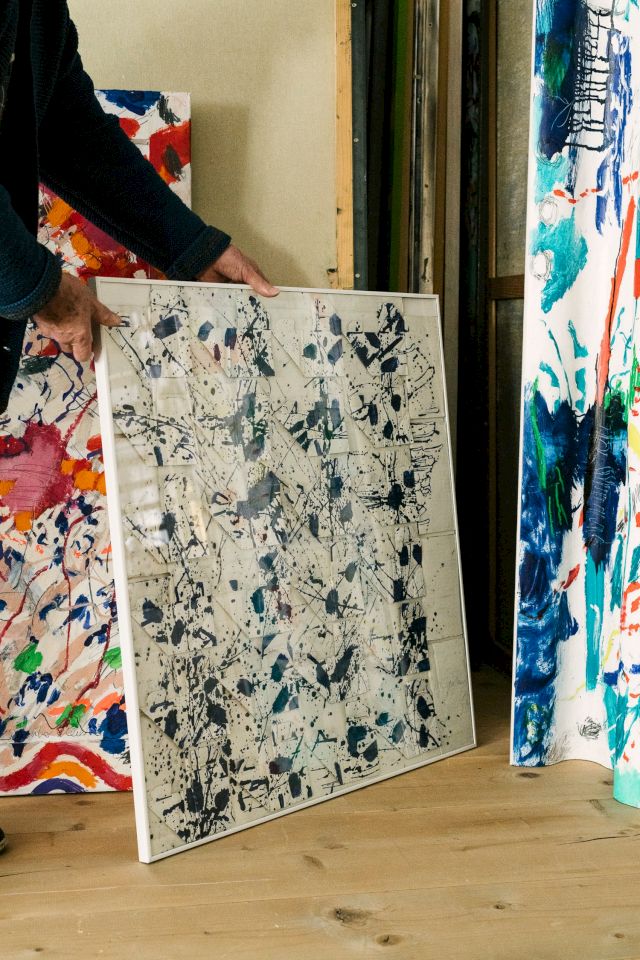 Öl, Stifte, Acryl auf Pappe, Fundstück